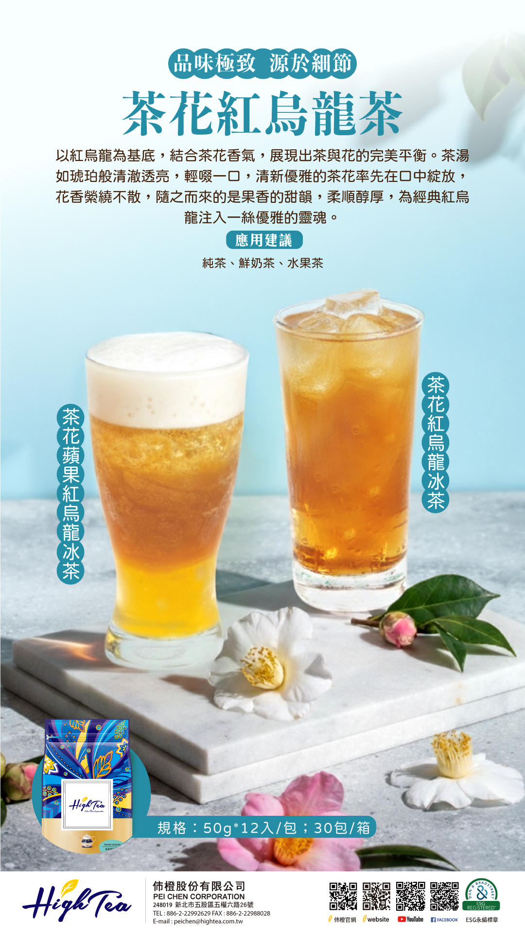 以紅烏龍為基底,結合茶花香氣,展現出茶與花的完美平衡。茶湯如琥珀般清澈透亮,輕啜一口,清新優雅的茶花率先在口中綻放,花香縈繞不散,隨之而來的是果香的甜韻,柔順醇厚,為經典紅烏龍注入一絲優雅的靈魂。適合純茶、鮮奶茶、水果茶,茶花氣泡紅烏龍等多種搭配。【如需諮詢,請點選LINE@或是聯絡我們並留下基本資料】
