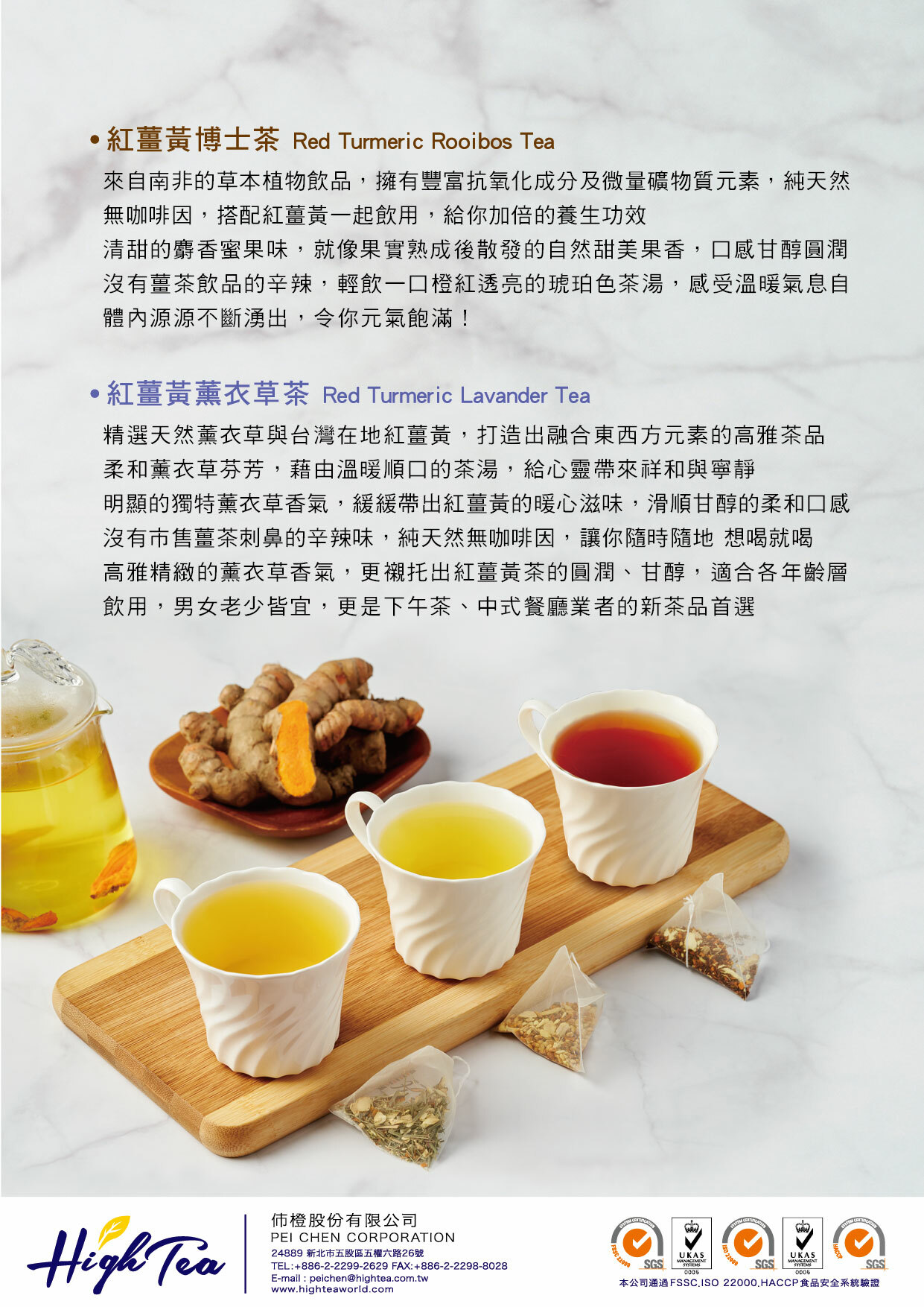 嚴選台灣在地紅薑黃與老薑精選天然薰衣草與台灣在地紅薑黃打造出融合東西方元素的高雅茶品柔和薰衣草芬芳天然無咖啡因、搭配紅薑黃一起飲用可促進新陳代謝調節生理機能.【如需諮詢,請點選LINE@或是聯絡我們並留下基本資料】